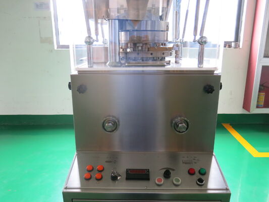 Maszyna jest podwójnie prasującą, automatycznie obracającą się maszyną do prasowania kawałków, która może sprawić, że ziarno zostanie sprasowane w okrągły kawałek, rzeźbione postacie, specjalne kształty i dwukolorowa recepta na kawałki. Jest ona stosowana głównie do wytwarzania recept na sztuki dla przedsiębiorstw przemysłu farmaceutycznego, takich jak chemikalia przemysł, żywność, elektronika. (Uwaga: przy produkcji dwukolorowego elementu wystarczy wymienić komponenty i dodać urządzenie pochłaniające proszek, co znacznie obniża koszty.