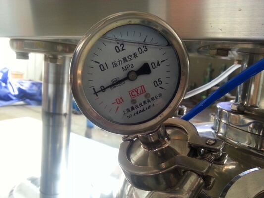 Materiał jest mieszany zarówno przez środkowe ostrze, jak i boczny skrobak, który działa na wewnętrznej powierzchni garnka, zapobiegając przyklejaniu się mieszanych materiałów do ściany.W procesie mieszania łopatkowego materiały są stale kruszone, prasowane, składane.Następnie materiał jest przesyłany do jednostki mieszającej odcinającej, gdzie jest ponownie odcinany, łamany i mieszany przez silną interakcję pomiędzy obracającym się kołem tnącym a osłoną tnącą.Materiały są ostatecznie kruszone na małe granulki o wielkości 200um ~ 2um.Poza tym, ze względu na podciśnienie w naczyniu emulgującym, bąbelki powstające podczas mieszania i mieszania są odsysane z materiału.System z obiegiem ex może sprawić, że homogenizacja będzie silniejsza.Materiał w garnku może być wydzielany tylko pod stanem zmiany kierunku zaworów sterujących.