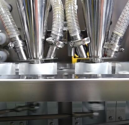1.Rozwijanie filmu 2.Formowanie worka 3.Przewodnik filmu 4.Fotocella5.Podnie uszczelnienie 6.Uszczepienie pionowe 7.Drugie uszczelnienie pionowe 8.Szkórka 9.Dwukrotne cięcie 10.Puch Catching 11.Puch Catching 12.Puch Pulling 13.Otwarcie torebki 14Wypełnienie I 15. Wypełnienie II 16. Górna pieczęć 17. Produkt gotowy 18.